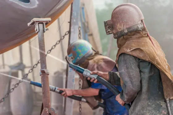 Sandblasting: Precision surface preparation and restoration for wood, metal, concrete, and more.